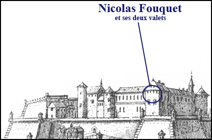 Saint-Mars l’accueille et le conduit à sa prison, qui jouxte son propre logement ! Dans l’antichambre logent ses deux valets. Car, à cette époque, un homme d’importance doit avoir un serviteur, même en prison. Et comme Fouquet est très important, il a deux valets qui se nomment Champagne et La Rivière. Ils ne devront pas sortir vivants du donjon, a décidé Louvois : Fouquet détient d’importants secrets. Ceux qui le côtoient doivent partager son destin.